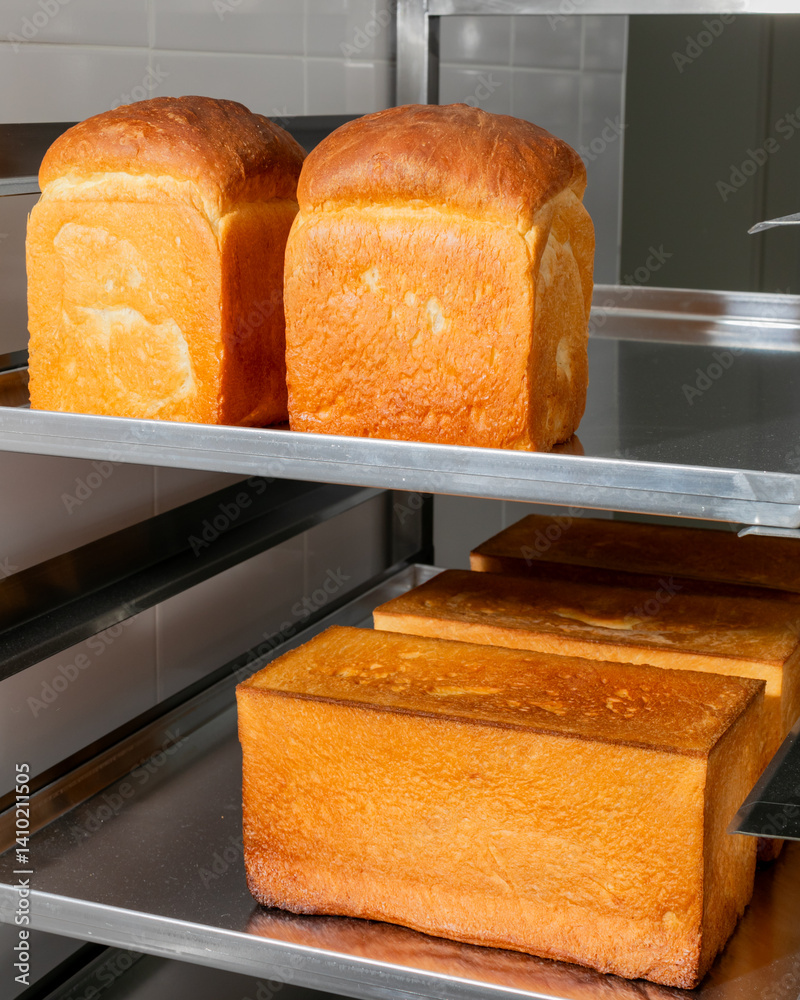 Freshly baked golden loaves of bread on cooling racks, evoking concepts of home baking and Thanksgiving feasts