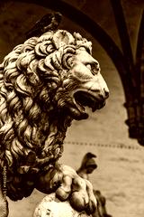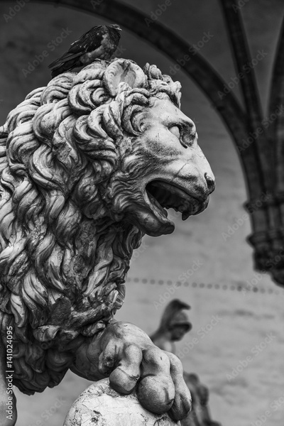 Sculpture of The Medici lion in Loggia dei Lanzi in Florence, Italy
