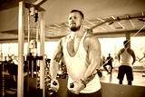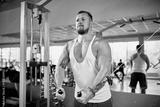 Man doing workout on fitness machine at gym.