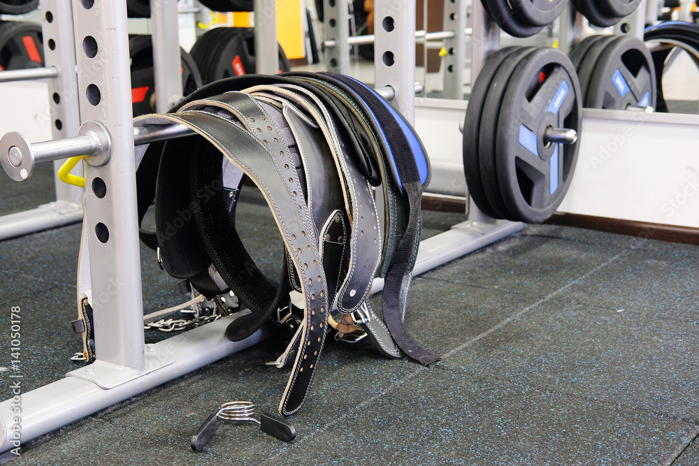 Weight belts in a fitness hall