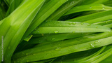 Beautiful green leaves with with rain water droplets. Natural texture background