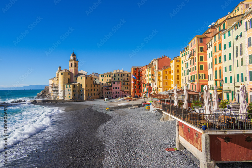 The village of Camogli is a fishing village and tourist resort located on the west side of the peninsula of Portofino, on the Golfo Paradiso Riviera di Levante, Italy