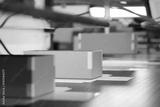 Conveyor belts transport cardboard boxes in a decorative box factory featuring advanced robotic technology