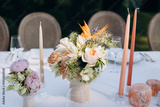 Wedding. The festive table is decorated with floral arrangements and candles.