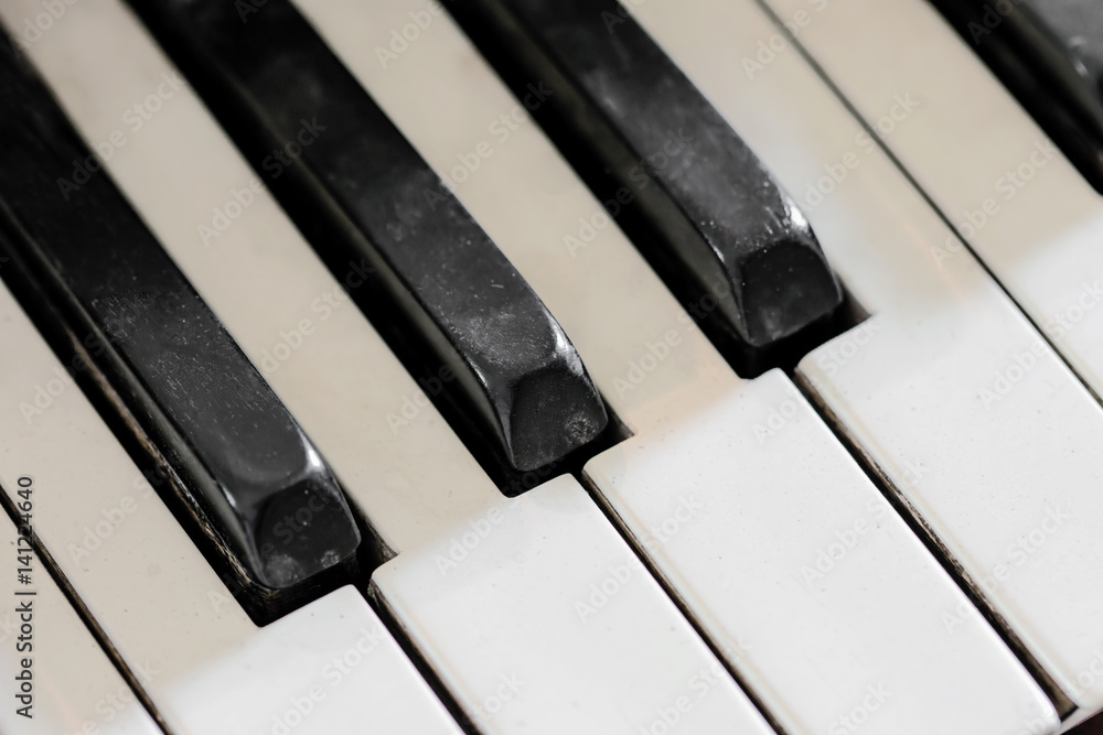 Detail of old, broken and dusty organ keys