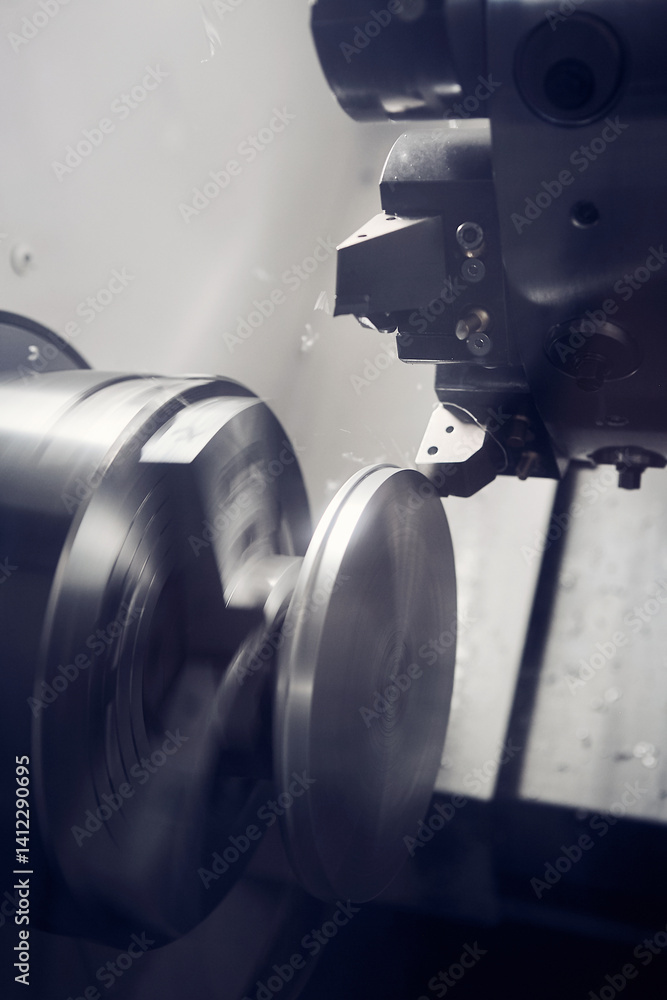 Cutting groove of turning and milling machine on a metal shaft. High-tech manufacturing process of parts on a CNC lathe.