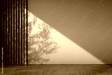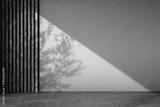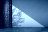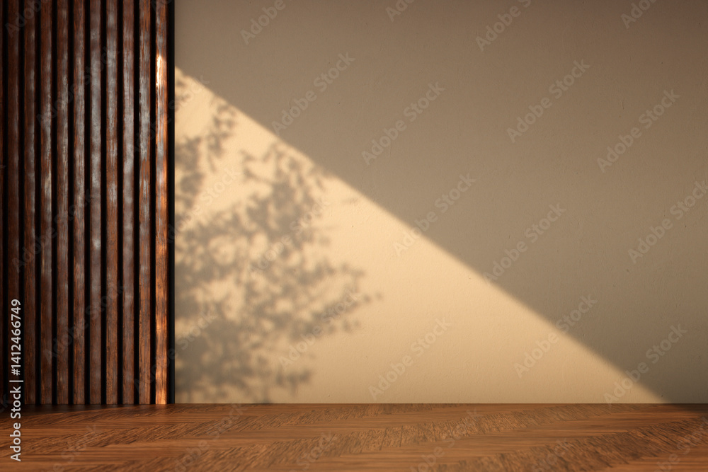 Modern empty room with sunlight and tree shadow. Interior background mockup with beige plaster wall and wooden floor. Minimalist living room scene.