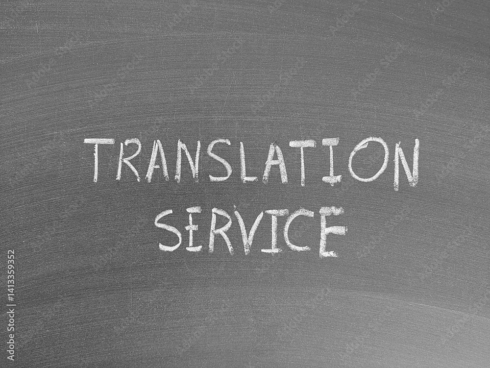 Translation service advertised with chalk on a dark blackboard, a professional linguistic solution for businesses and individuals.