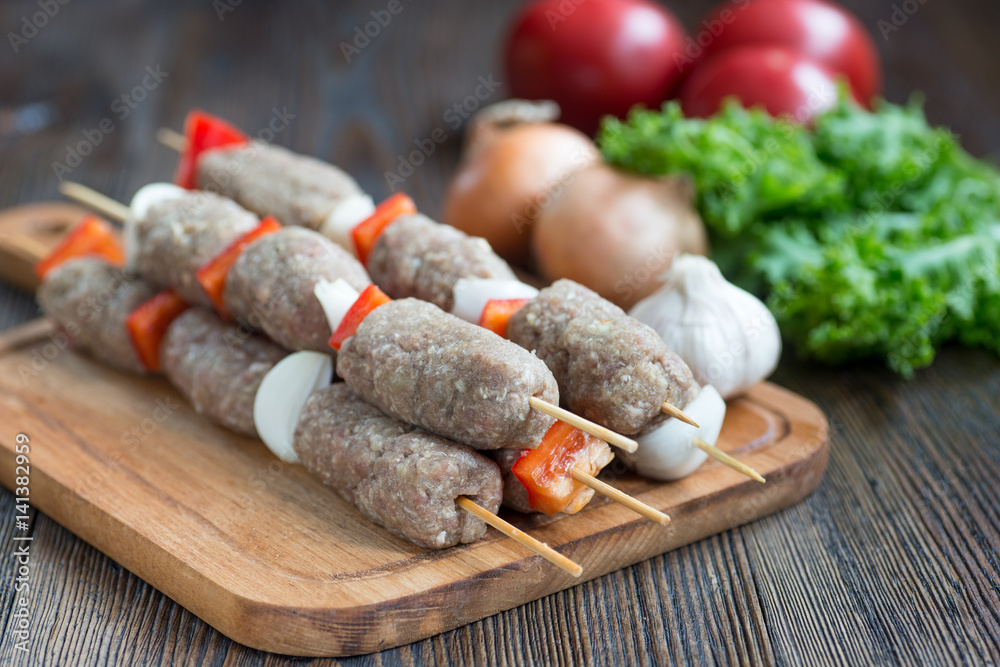 Fresh raw minced meat skewers kebabs