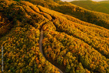 The aerial view captures the serene beauty of nature in full seasonal transition