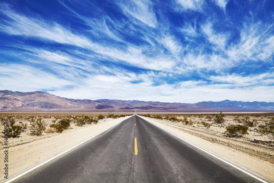 Endless desert road in the Death Valley, travel concept, USA.