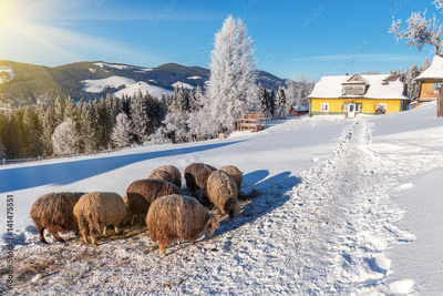 sheeps, winter, mountain