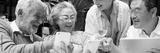 Group of older adults enjoying technology together, smiling and sharing moments. Diverse seniors with smartphones and tablets, engaging and connecting happily. Diverse seniors on social media.