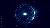 Abstract background with circular shape formed of small particles. Light ray effect.