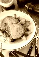 prato com bisteca suína grelhada ao molho de mostarda e mel
