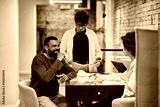 Collaborative brainstorming in a modern office space during a creative team meeting