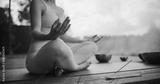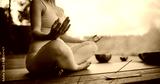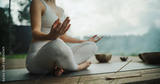 Anonymous Female Sits Cross-Legged, Meditating in a Nature Retreat, Blending with Peaceful Forest Surroundings. Incense Gives Soothing Aromas, while the Harmonious Tones of Singing Bowls Resonate