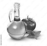 garrafa de azeite, folha de manjericão e tomate vermelho maduro em fundo branco