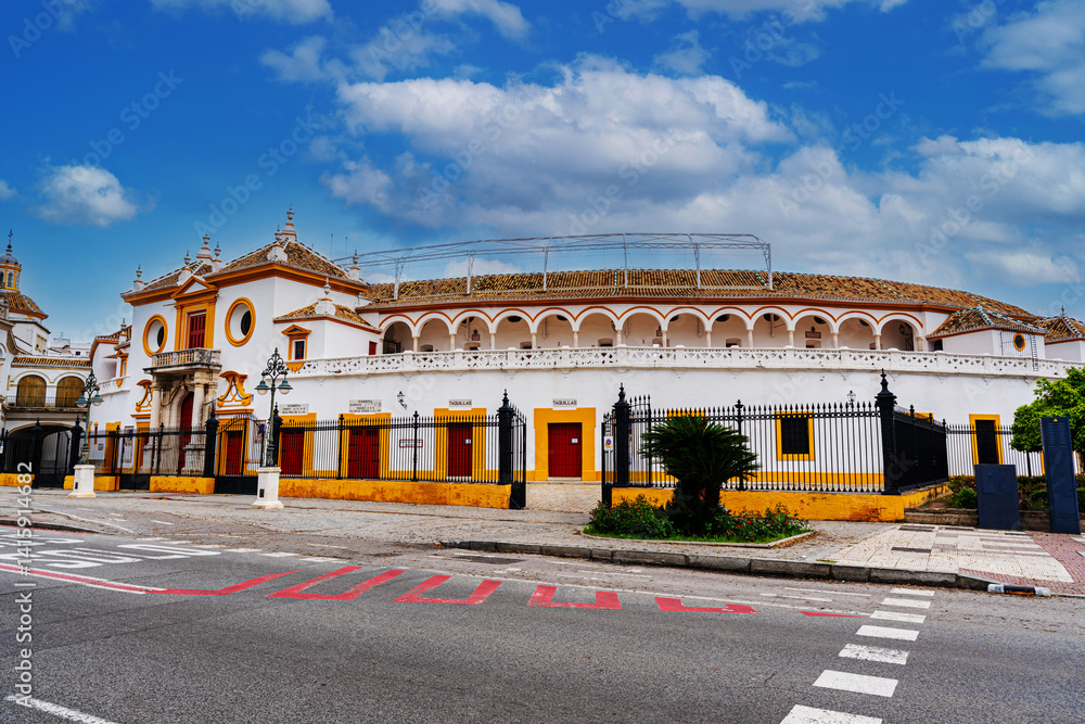 Plaza de Toros de la Real Maestranza de Caballeria de Sevilla. Historic bullring in Seville, Spain, known for its bullfighting festivals.