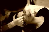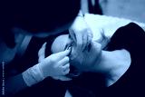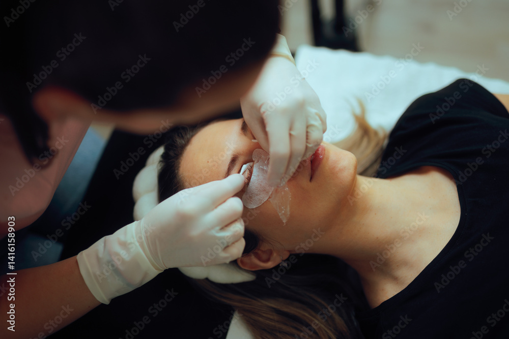 Beautician Prepares Eyelashes for the Lamination Procedure at the Salon . Woman goes to a beauty salon for beauty procedures