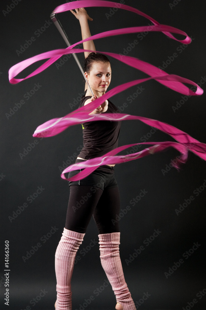 beautiful dancer with pink ribbon