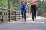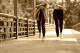 two women athlete running together at outdoor public park
