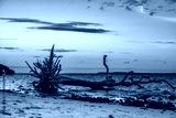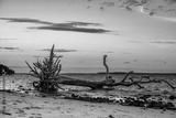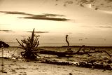 Sunset view of fallen tree at Norfolk Beach, Coochiemudlo Island, Queensland, Australia