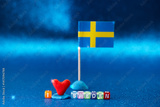 Craft display with Swedish flag and colorful blocks expressing love for Sweden at a creative workspace