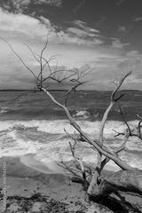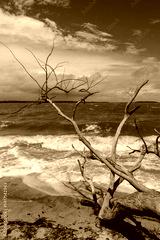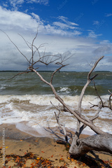 Dead branch and orange leaves on the beach. Main Beach, Coochiemudlo Island, Queensland, Australia