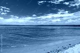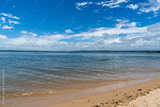 View across the calm, clear water of Moreton bay, from Morwong Beach, on a sunny day. Coochiemudlo Island, Queensland, Australia