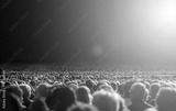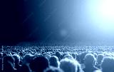 Panoramic photo of large crowd of people. Slow shutter speed motion blur.