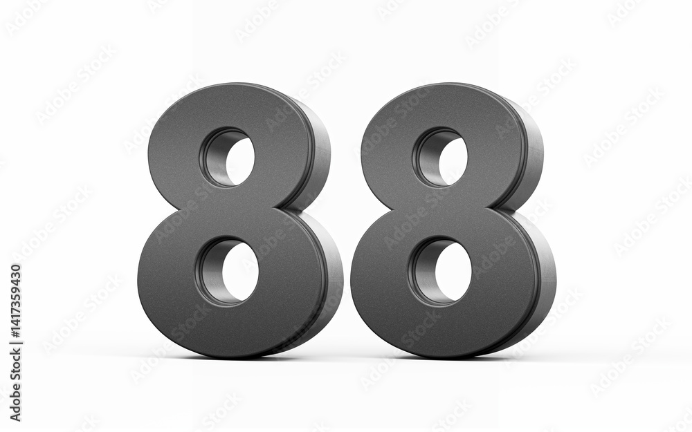 Sleek metallic Black number 88 Eighty eight standing on a white background, 3d illustration