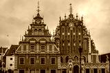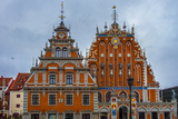House of the Blackheads (Latvian: Melngalvju nams, German: Schwarzhäupterhaus) , old town of Riga, Latvia, Europe with a cloudy sky on a background
