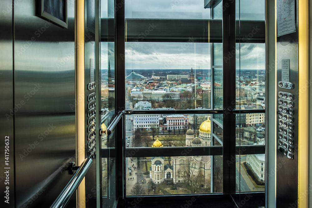 Roofs of the old city center of Riga, Latvia, Europe - top view from the urban elevator