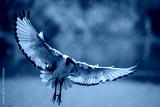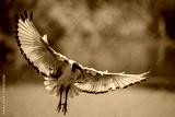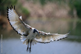 a sacred ibis with its wings stretched about to land