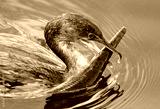 Cormorant bird with Alligator Gar in its beak in the Florida Everglades