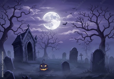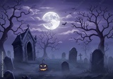 Spooky Halloween Graveyard at Night with Jack-o'-Lantern