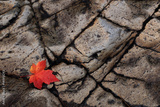 Red leaf. Leaf on a stone. Autumn in Canada. Background.