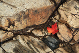 Red leaf. Leaf on a stone. Autumn in Canada. Background.