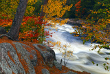 Autumn in Canada. Colors of autumn. Fall colors. Mountain stream. Stones in the forest. On the banks of the river. Bright colors. Stones, the river. Autumn forest.