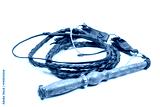 Leather whip isolated over white background closeup macro