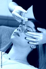 Patient receiving non-surgical crow's foot skincare for wrinkle reduction. Chemical Peel Face Treatment for woman face at beauty clinic. Non-traumatic procedure facial rejuvenation. PRX-T33 peeling