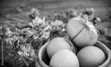 Easter eggs on wooden background. Happy Easter