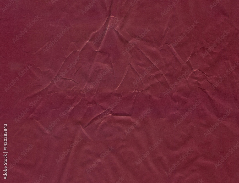 Surface of burgundy color with traces of denting. The wall of brown shade. Shabby surface of dark-red color. Polyethylene backdrop of dark scarlet color. Wrinkled synthetic texture and its background