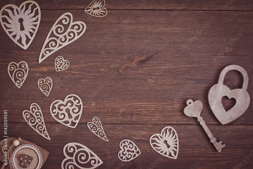 Hearts on a wooden background