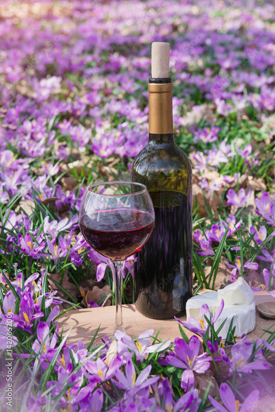 Romantic dinner with red wine and cheese