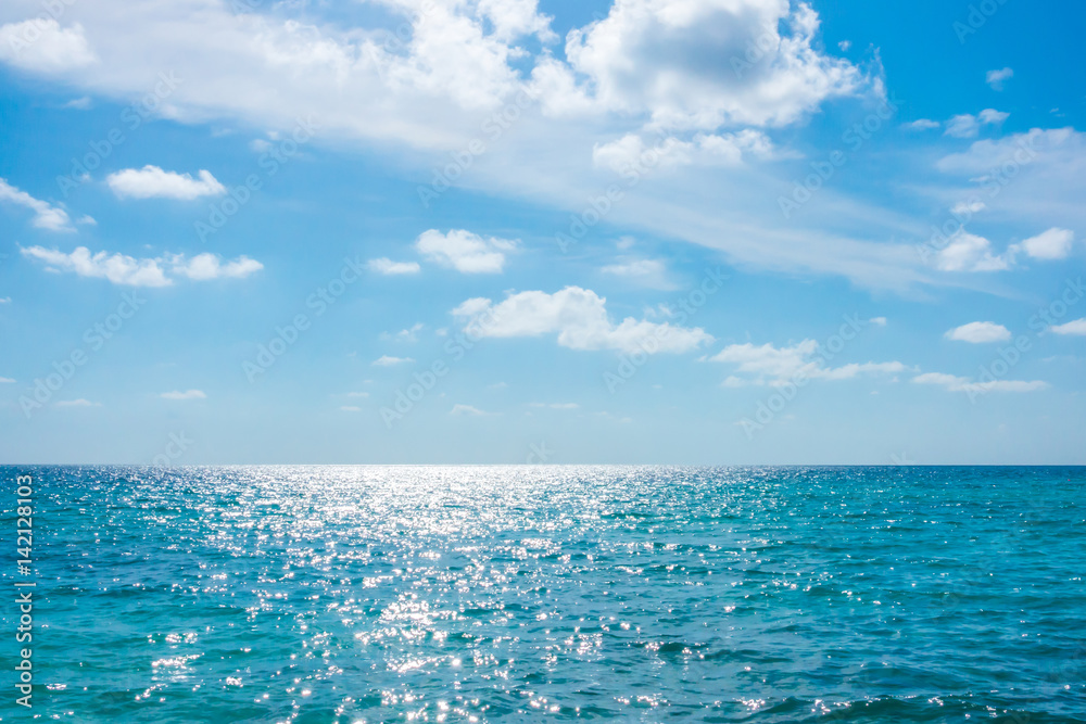 White clouds with blue sky over calm sea in tropical Maldives island .