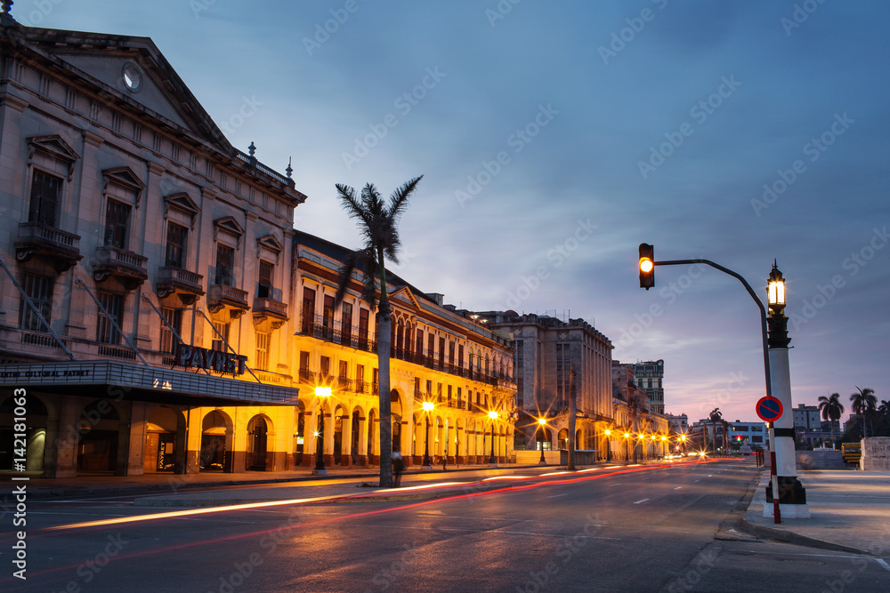 Street of Havana at sunrise, Cuba