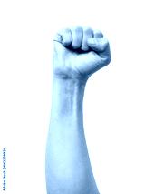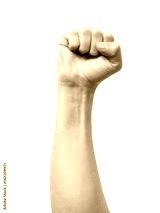 Male clenched fist isolated on white