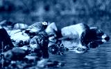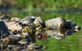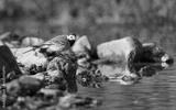 Motacilla alba aka White wagtail perched on the stone beach. Common bird in Czech republic.